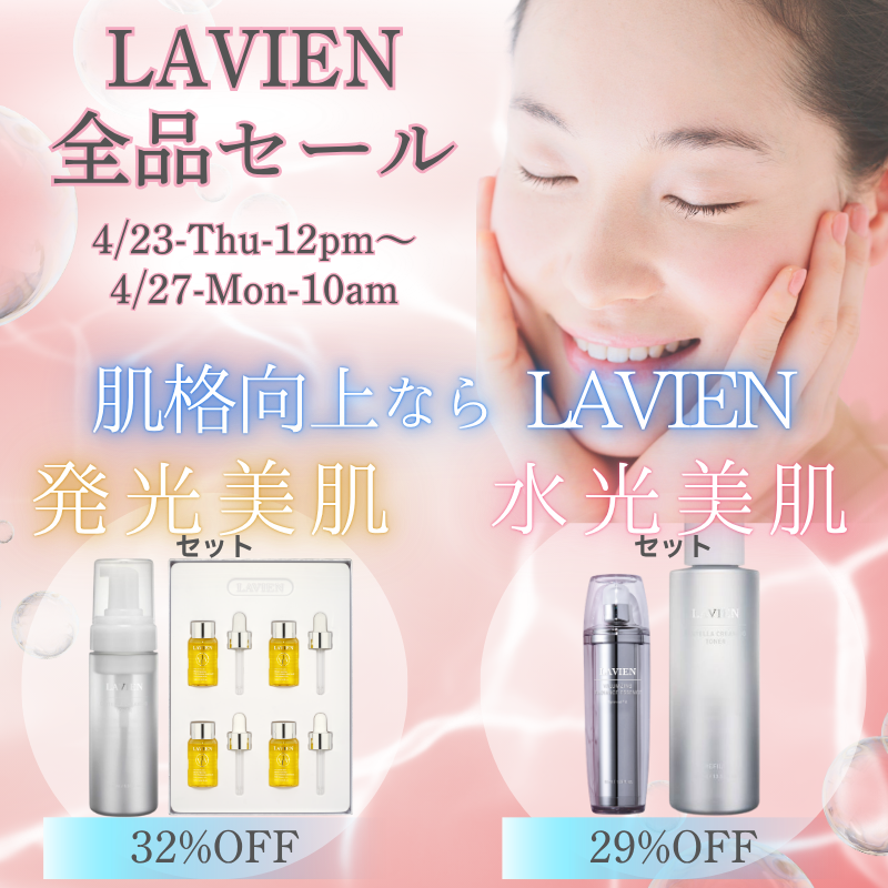 トナーで肌を整え、ピンクエッセンスでツヤとうるおいを重ねる。LAVIEN人気のしっとりケアを一緒に体感できる特別セット。